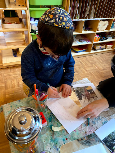 In class, Morah Jessica worked one on one, or with groups of two, drawing and labeling the pictures from our walk.